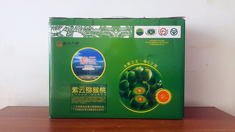 如图一:采用五层瓦楞礼盒,300克的面纸彩印、复膜、裱五层瓦楞纸板。复膜不但能起保护纸张色彩的目的,还有一定的防水效果,瓦楞的原理会在动输过程中对猕猴桃起到一琮保护的作用,五层厚度的纸板增加整个包装盒的强度,内配泡沫箱,果子之间无碰撞,保持新鲜味道送到顾客的手中。