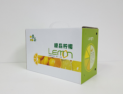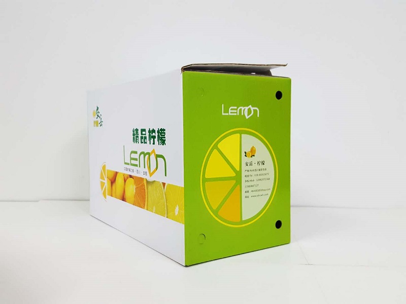 在柠檬包装盒制作选用材料之前,了解柠檬是一种比较容易保存的水果,有柠檬果皮保护,果实酸性环境更能保质,不容易坏,所以对柠檬包装制作中也不必特殊工艺的处理,成都水果包装盒常做的瓦楞彩盒也是柠檬包装盒首选材质。(如图所示)